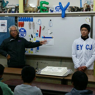 青山さんから特製ケーキがプレゼントされ、桐井君はもちろん全選手、保護者に振る舞われました。